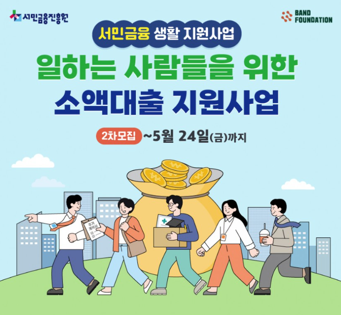 📍신청방법 : 재단법인 밴드 홈페이지(회원가입 필수) ▶ 대출사업 ▶ 개인대출 ▶ 서민금융 생활안정분야 소액대출