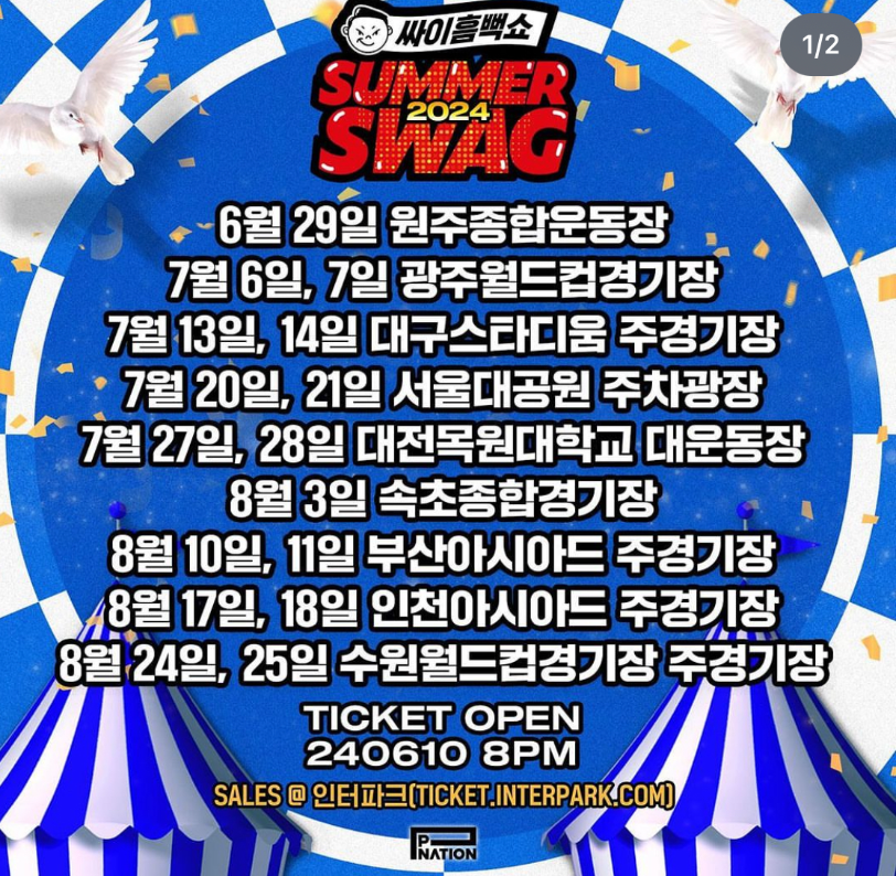 공식 굿즈와 티켓예매만큼 중요한게 싸이 흠뻑쇼 일정과 장소입니다. 총 9개 도시에서 싸이흠뻑쇼를 진행합니다. 싸이흠뻑쇼 공식 굿즈와 함께 뜨거운 하루를 보내세요!
