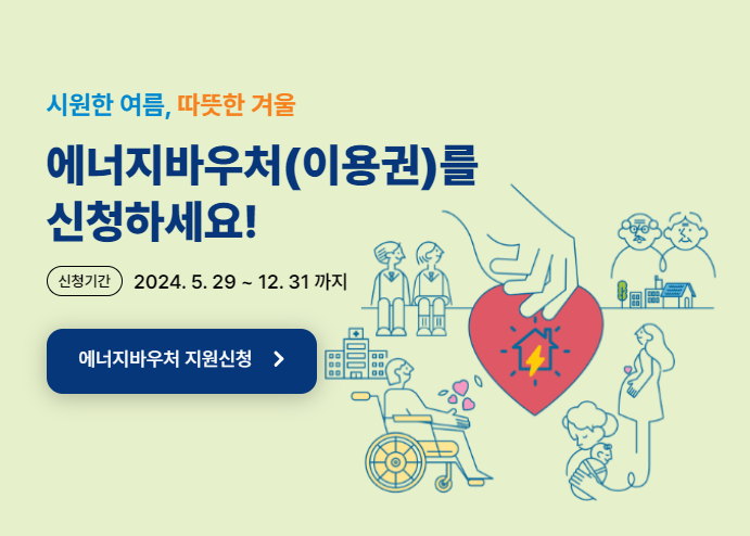 지금 바로 신청하여, 여러분과 가족들이 따뜻하고 시원한 생활을 누릴 수 있는 기회를 잡으세요. 에너지 바우처는 여러분의 생활을 보다 쾌적하고 안전하게 만들어줄 것입니다.