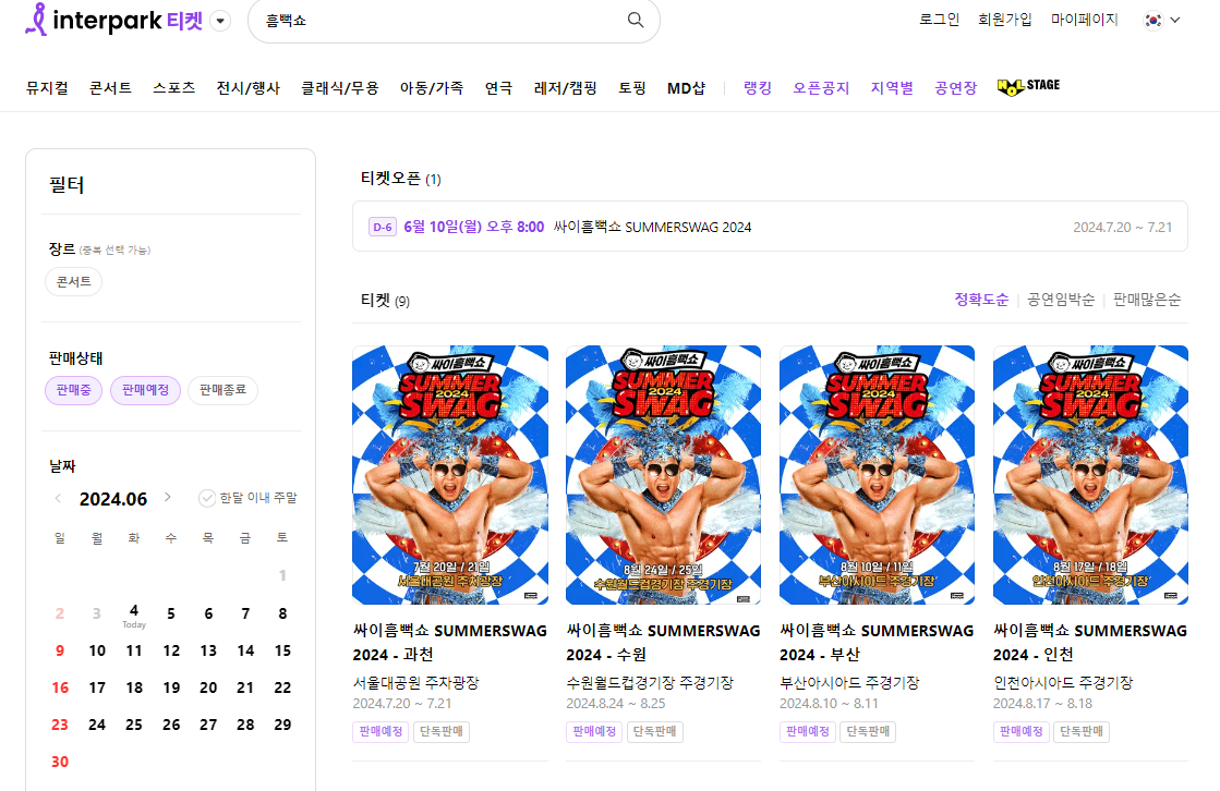 🗺️ 2024년 싸이 흠뻑쇼 개최 장소별 일정