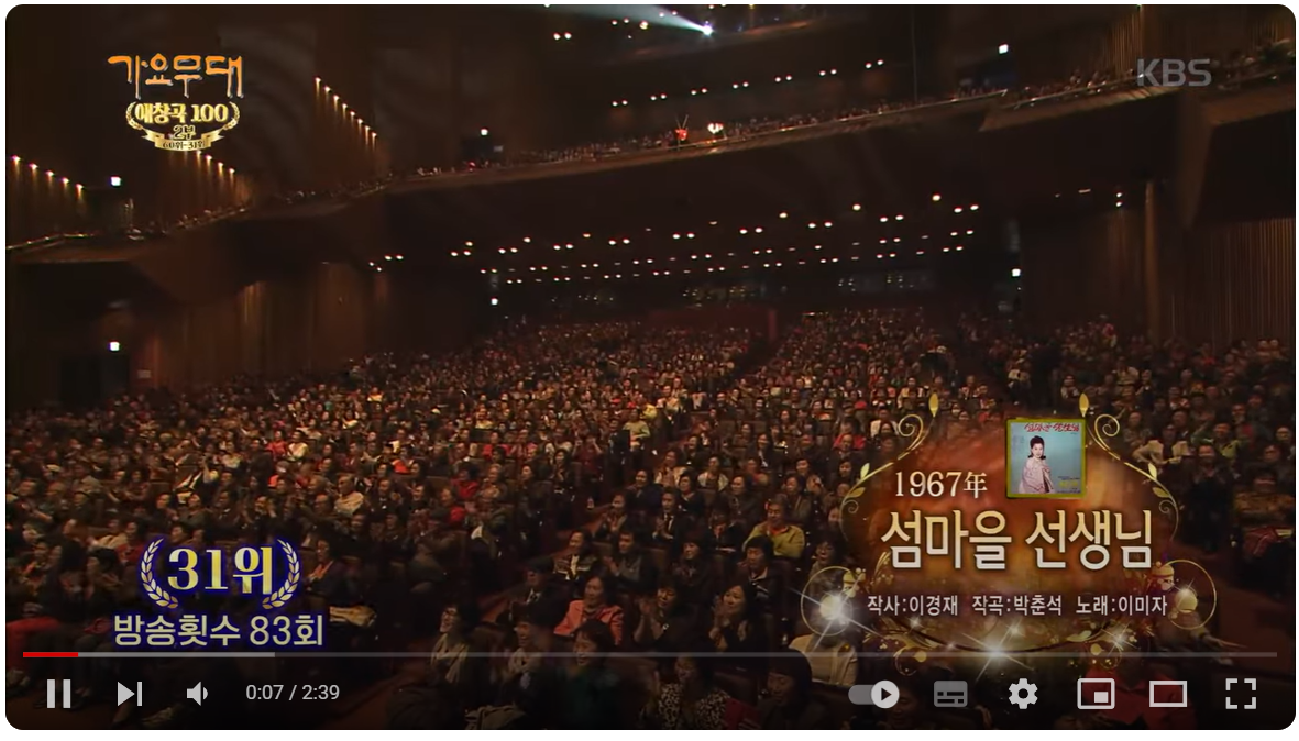 수많은 히트곡 중에서 누구나 한 번쯤 들어봤음직한, "부모님께 이 노래 아세요?" 했을 때 바로 따라 부르실 수 있는 명곡 세곡을 선정하였습니다. 동백아가씨, 그리움은 가슴마다, 섬마을 선생님!!!! 노래 제목 아래 영상이미지를 누르면 바로 무료로 이미자 무대를 감상하실 수 있으니 부모님께 한번 보여드려 보세요